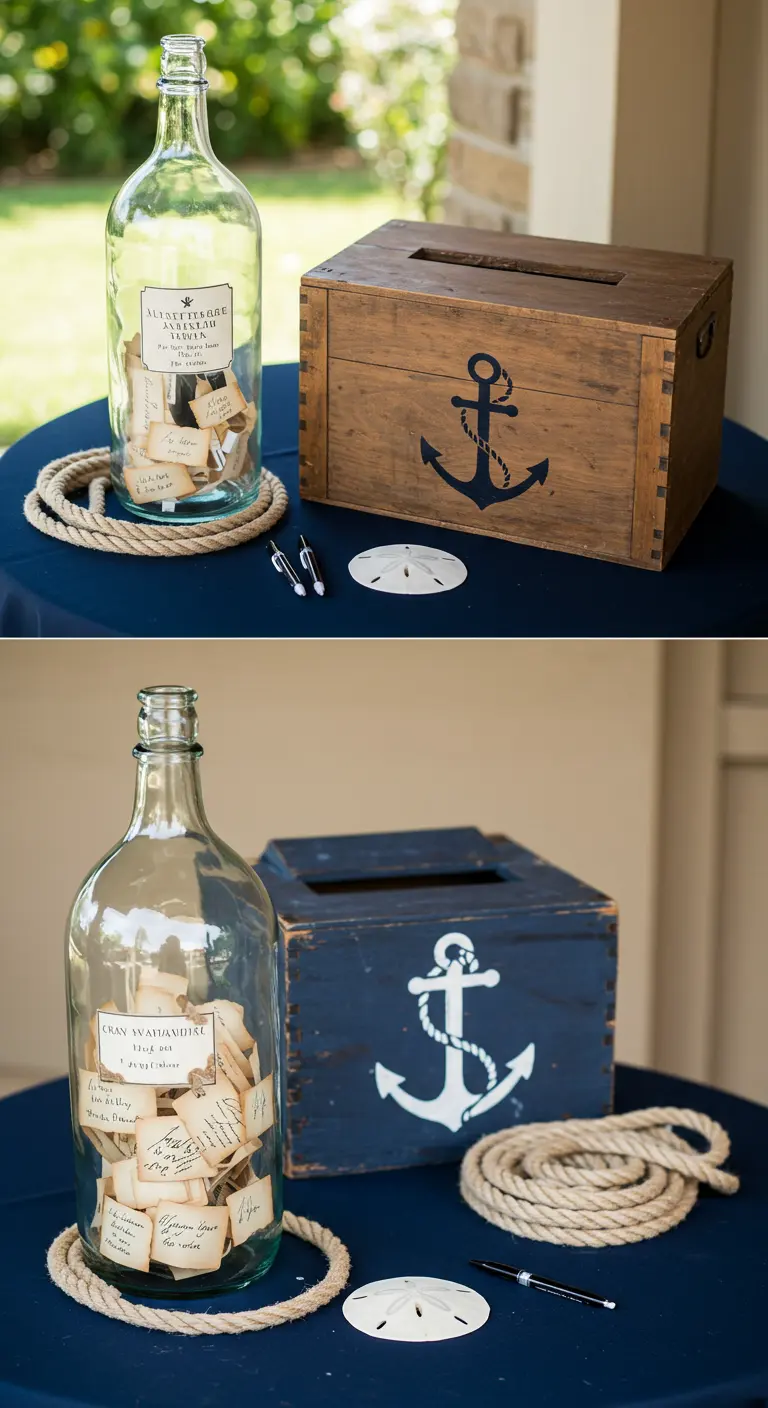 Swap a standard guest book for a charming “message in a bottle” that becomes a treasured keepsake.